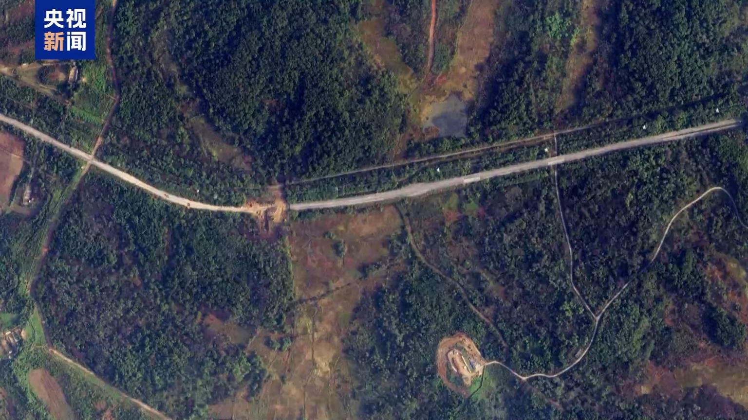 交易卫星公司16日发布的卫星图像袒露,通往朝鲜开城市的说念路被断开,路面和左近地区出现大裂口。